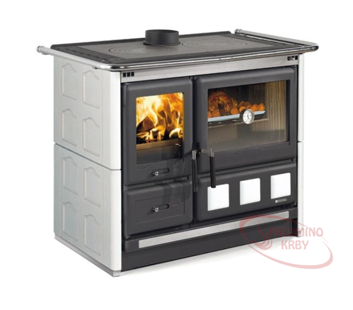 Vysokokvalitné liatinové kachle na kúrenie drevom a drevenými briketami s preskleným ohniskom a masívnou kachľovou obložkou. Veľmi obľúbená pec nielen na chaty a chalupy, kde sa bude používať na vykurovanie a vďaka smaltovanej rúre aj na pečenie a vďaka veľkej liatinovej varnej doske na varenie.