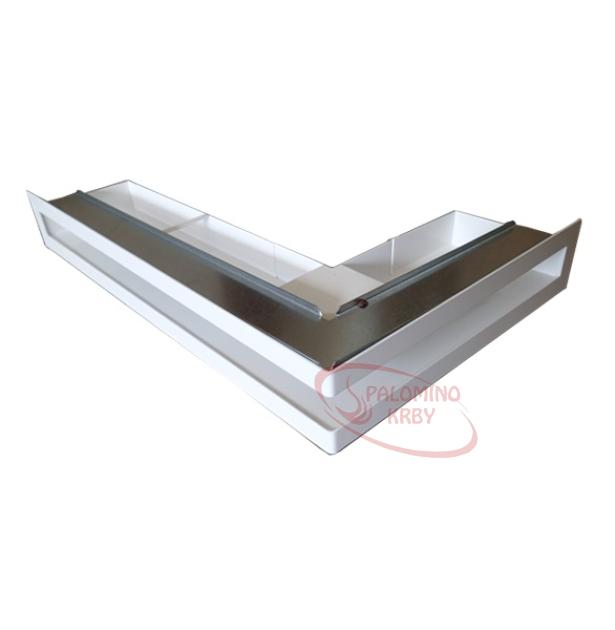 Dizajnová krbová mriežka Ventlab rohová ľavá s rozmerom ramien 500 a 300mm a výškou 100mm. Súčasťou mriežky je pozinkovaný montážny rámik, uľahčujúci montáž mriežky a umožňujúci jej demontáž (v prípade potreby). - farba: biela Krbová mriežka sa montuje v opláštení (obostavbe) rohov...